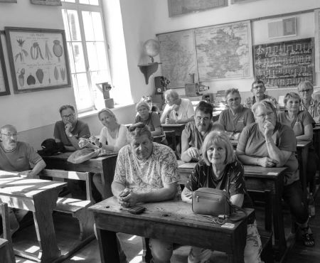 Le week-end du 7 au 8 mai 2023, le club était sur la route pour un périple dans le jura au départ de Port sur Saône. Arrêt à Ougney pour la pause café/croissant puis direction les salines d’Arc et Cenans. Visite du célèbre village de château Chalons ou nous sommes redevenus des écoliers le temps d’une leçon avec une maîtresse à l’ancienne,( baguette de rigueur). Visite et dégustation de vin du jura. Nuit à l’hôtel du Berry à Lons le Saunier. Le lendemain, visite du musée de l’auto à Perrigny. Visite des grottes de Baumes les messieurs. Arrêt à le source du Lison et retour sur Montigny les Vesoul pour un apéritif au Marais. Un très, très grand merci à notre président Alain et son épouse pour avoir organisé à la perfection ce magnifique week-end.